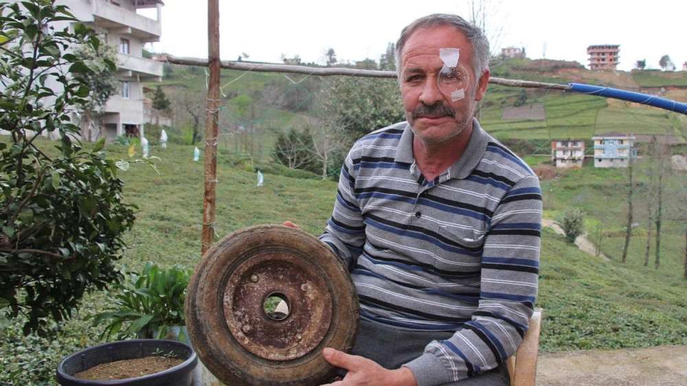 Alınan bilgiye göre, Of'un Sarıbey Mahallesi'nde yaşayan Alay Dumangöz (50), el arabası lastiğine hava basmak isterken hayatının şokunu yaşadı. Köyde bahçe işlerinde kullandığı el arabası lastiğinin havasının sönmüş olduğunu gören Dumangöz, lastiği alarak lastikçiye götürdü. Lastikçi de lastiğe hava bastığı esnada bir anda gümleyen lastiğin jantı Dumangöz'ün yüzüne vurdu. Olay yerinde baygınlık geçiren Dumangöz, ambulansla Trabzon'daki Karadeniz Teknik Üniversitesi (KTÜ) Tıp Fakültesi Farabi Hastanesi'ne kaldırıldı. 12 gün hastanede yoğun bakımda yatan Dumangöz bir gözünü kaybetti, çenesi ve dili zarar gördü.
