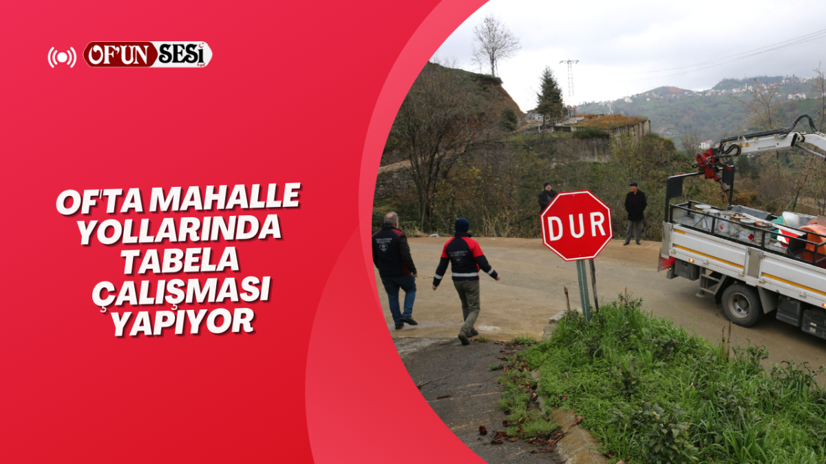 Of'ta mahalle yollarında tabela çalışması yapıyor