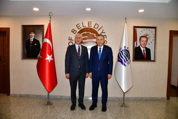 Trabzon Valisi Tahir Şahin, Of Belediyesi'ni ziyaret ederek Of Belediye Başkanı Salim Salih Sarıalioğlu ile bir araya geldi.